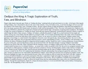 Oedipus the King: A Tragic Exploration of Truth, Fate, and Blindness. (2019, Oct 24). Retrieved from https://hub.papersowl.com/examples/oedipus-the-king-the-story-of-the-consequences-of-a-curse-placed-on-king-oedipus/