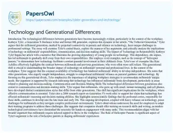 In conclusion, Kathryn Tyler's "The Tethered Generation" offers a compelling analysis of the technological differences between generations, particularly in the context of the workplace. Her arguments effectively highlight the challenges millennials face due to their reliance on technology and parental involvement. By examining the impact of technology on responsibility, communication, and decision-making skills, Tyler provides valuable insights for employers seeking to adapt to the needs of the millennial workforce. Her article is well-structured and supported by credible evidence, making it a valuable resource for understanding the complex dynamics of generational differences in technology use.