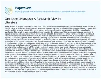 Omniscient Narration: A Panoramic View in Literature