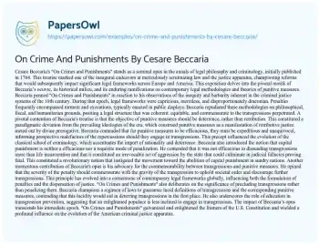 On Crime And Punishments By Cesare Beccaria