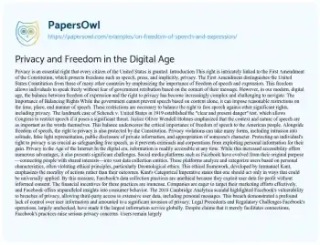 Privacy and Freedom in the Digital Age. (2022, Feb 12). Retrieved from https://hub.papersowl.com/examples/on-freedom-of-speech-and-expression/