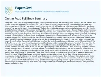 On the Road Full Book Summary. (2024, Apr 22). Retrieved from https://hub.papersowl.com/examples/on-the-road-full-book-summary/
