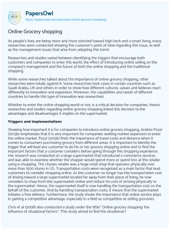 Online Grocery shopping. (2019, Feb 11). Retrieved from https://hub.papersowl.com/examples/online-grocery-shopping/