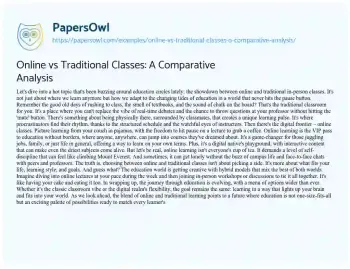 Online vs Traditional Classes: A Comparative Analysis. (2024, Mar 01). Retrieved from https://hub.papersowl.com/examples/online-vs-traditional-classes-a-comparative-analysis/