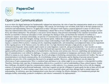 Open Line Communication. (2024, Apr 14). Retrieved from https://hub.papersowl.com/examples/open-line-communication/