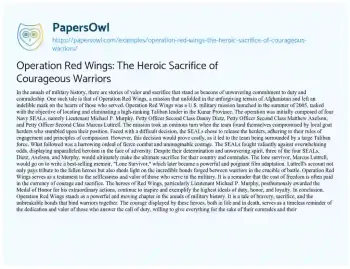 Operation Red Wings: The Heroic Sacrifice of Courageous Warriors. (2024, Jan 26). Retrieved from https://hub.papersowl.com/examples/operation-red-wings-the-heroic-sacrifice-of-courageous-warriors/