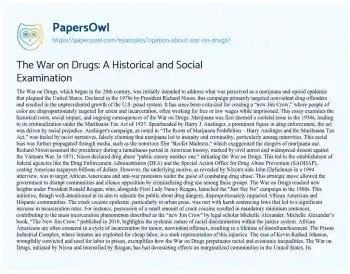 The War on Drugs: A Historical and Social Examination. (2021, May 09). Retrieved from https://hub.papersowl.com/examples/opinion-about-war-on-drugs/