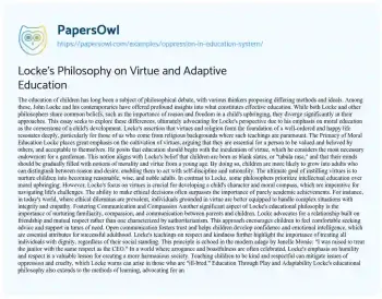 Locke’s Philosophy on Virtue and Adaptive Education. (2022, Feb 07). Retrieved from https://hub.papersowl.com/examples/oppression-in-education-system/