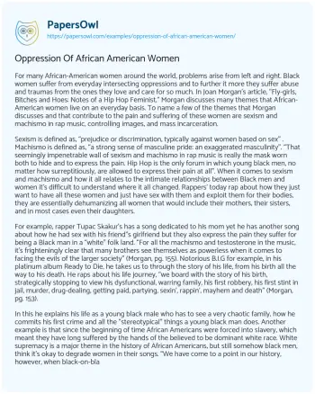 Oppression Of African American Women