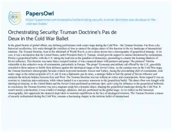 Orchestrating Security: Truman Doctrine’s Pas de Deux in the Cold War Ballet
