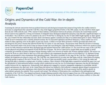 Origins and Dynamics of the Cold War: An In-depth Analysis. (2024, Jul 06). Retrieved from https://hub.papersowl.com/examples/origins-and-dynamics-of-the-cold-war-an-in-depth-analysis/