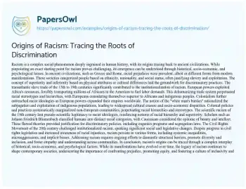 Origins of Racism: Tracing the Roots of Discrimination. (2024, May 12). Retrieved from https://hub.papersowl.com/examples/origins-of-racism-tracing-the-roots-of-discrimination/