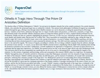 Othello A Tragic Hero Through The Prism Of Aristotles Definition