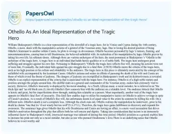 This essay will analyze Othello as a tragic hero in Shakespeare’s play. It will discuss his noble qualities, the tragic flaw that leads to his downfall, and how he embodies the classic elements of a tragic hero. More free essay examples are accessible at PapersOwl about Hero.