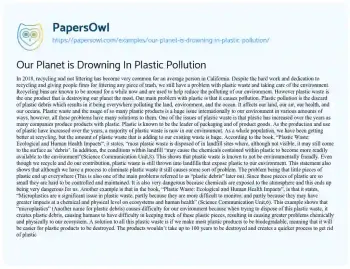 Our Planet is Drowning In Plastic Pollution. (2021, Jun 03). Retrieved from https://hub.papersowl.com/examples/our-planet-is-drowning-in-plastic-pollution/