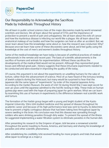 Our Responsibility to Acknowledge the Sacrifices Made by Individuals Throughout History. (2021, Mar 13). Retrieved from https://hub.papersowl.com/examples/our-responsibility-to-acknowledge-the-sacrifices/