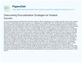 Overcoming Procrastination: Strategies for Student Success. (2024, Mar 01). Retrieved from https://hub.papersowl.com/examples/overcoming-procrastination-strategies-for-student-success/