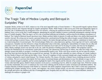 The Tragic Tale of Medea: Loyalty and Betrayal in Euripides' Play. (2019, Nov 26). Retrieved from https://hub.papersowl.com/examples/overview-of-medea-tragedy/