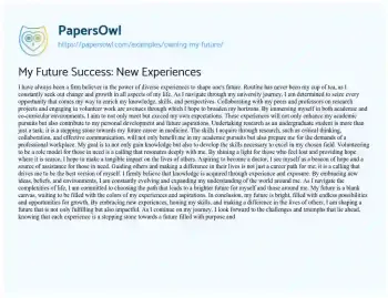My Future Success: New Experiences. (2021, Apr 25). Retrieved from https://hub.papersowl.com/examples/owning-my-future/