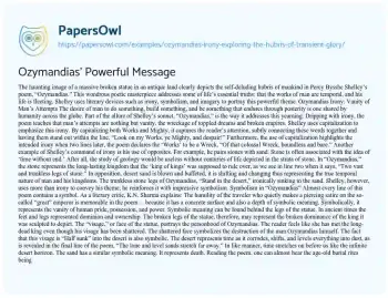 Percy Bysshe Shelley’s poem “Ozymandias” serves as a powerful meditation on the transient nature of power and glory. This essay explores the irony inherent in the poem’s depiction of a fallen statue in a vast desert, once a symbol of immense power. The analysis focuses on how Shelley conveys the theme of the impermanence of human achievements and the ultimate futility of hubris. The overview examines the poetic devices used to underscore the irony of Ozymandias’s boastful inscription and the inevitable decline of all empires. Through This essay, the essay illuminates the broader human condition and the illusion of permanence in human endeavors. You can also find more related free essay samples at PapersOwl about God.