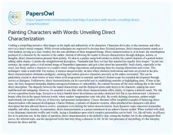 In summation, direct characterization is a potent instrument in an author's literary toolkit. When wielded with skill, it can illuminate characters swiftly and vividly, laying a foundation upon which complex personalities can be built. Yet, like all tools, its efficacy lies in its judicious use. In the dance of narration, direct characterization is the definitive step, setting the rhythm, but it's the subsequent fluid moves, the inferred traits, and the unexpected twirls that truly bring a character to life. In the vast panorama of storytelling, it's this interplay between the direct and the subtle that crafts unforgettable tales and enduring characters.