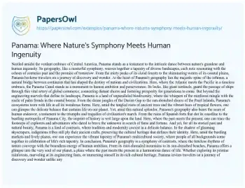 Panama: Where Nature's Symphony Meets Human Ingenuity. (2024, Jun 01). Retrieved from https://hub.papersowl.com/examples/panama-where-natures-symphony-meets-human-ingenuity/