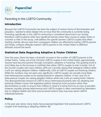Parenting in the LGBTQ Community. (2021, May 22). Retrieved from https://hub.papersowl.com/examples/parenting-in-the-lgbtq-community/