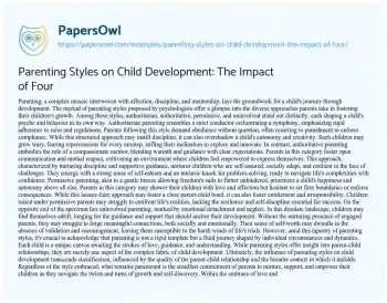 Parenting Styles on Child Development: The Impact of Four. (2024, May 12). Retrieved from https://hub.papersowl.com/examples/parenting-styles-on-child-development-the-impact-of-four/