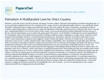 Patriotism: A Multifaceted Love for One's Country. (2024, Mar 18). Retrieved from https://hub.papersowl.com/examples/patriotism-a-multifaceted-love-for-ones-country/