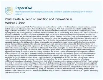 Paul's Pasta: A Blend of Tradition and Innovation in Modern Cuisine. (2023, Dec 01). Retrieved from https://hub.papersowl.com/examples/pauls-pasta-a-blend-of-tradition-and-innovation-in-modern-cuisine/