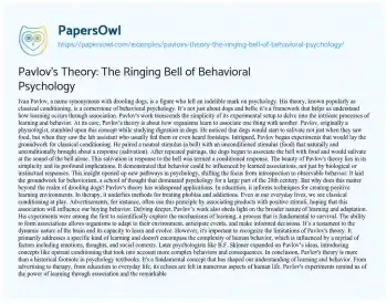 Pavlov’s Theory: The Ringing Bell of Behavioral Psychology