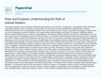 Paws and Purpose: Understanding the Role of Animal Shelters. (2024, Mar 12). Retrieved from https://hub.papersowl.com/examples/paws-and-purpose-understanding-the-role-of-animal-shelters/