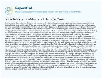 Social Influence in Adolescent Decision Making. (2021, Jul 15). Retrieved from https://hub.papersowl.com/examples/peer-pressure-can-help-mould-a-atudents-life/