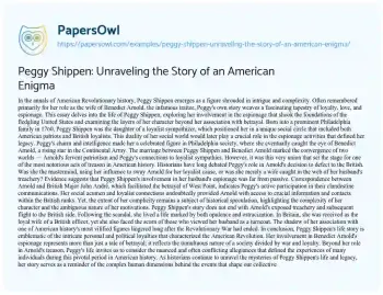 Peggy Shippen: Unraveling the Story of an American Enigma. (2024, Mar 01). Retrieved from https://hub.papersowl.com/examples/peggy-shippen-unraveling-the-story-of-an-american-enigma/