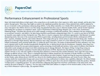 Performance Enhancement in Professional Sports. (2021, Nov 25). Retrieved from https://hub.papersowl.com/examples/performance-enhancing-drugs-the-war-on-drugs/