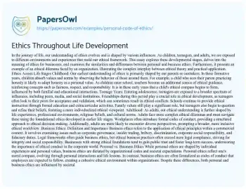 Ethics Throughout Life Development. (2021, May 04). Retrieved from https://hub.papersowl.com/examples/personal-code-of-ethics/