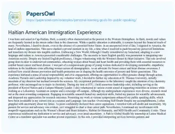 Haitian American Immigration Experience. (2022, Feb 12). Retrieved from https://hub.papersowl.com/examples/personal-learning-goals-for-public-speaking/