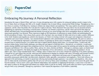 Embracing My Journey: A Personal Reflection. (2021, Oct 20). Retrieved from https://hub.papersowl.com/examples/personal-narrative-my-goals/