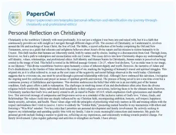 Personal Reflection on Christianity. (2023, Sep 01). Retrieved from https://hub.papersowl.com/examples/personal-reflection-and-identification-my-journey-through-christianity-and-professional-ethics/