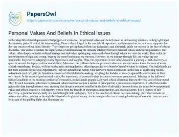 Personal Values And Beliefs In Ethical Issues. (2024, Apr 22). Retrieved from https://hub.papersowl.com/examples/personal-values-and-beliefs-in-ethical-issues/
