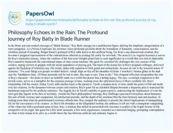 Philosophy Echoes in the Rain: The Profound Journey of Roy Batty in Blade Runner. (2024, Jan 26). Retrieved from https://hub.papersowl.com/examples/philosophy-echoes-in-the-rain-the-profound-journey-of-roy-batty-in-blade-runner/