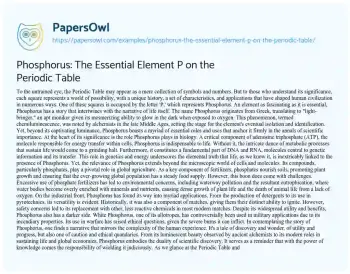 Phosphorus: The Essential Element P on the Periodic Table. (2023, Oct 26). Retrieved from https://hub.papersowl.com/examples/phosphorus-the-essential-element-p-on-the-periodic-table/