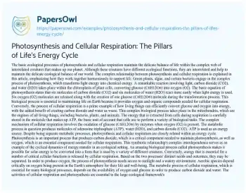 Photosynthesis and Cellular Respiration: The Pillars of Life's Energy Cycle. (2023, Nov 24). Retrieved from https://hub.papersowl.com/examples/photosynthesis-and-cellular-respiration-the-pillars-of-lifes-energy-cycle/
