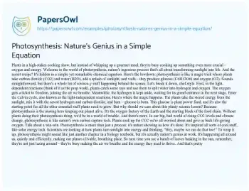 Photosynthesis: Nature's Genius in a Simple Equation. (2024, Feb 01). Retrieved from https://hub.papersowl.com/examples/photosynthesis-natures-genius-in-a-simple-equation/
