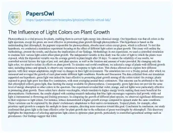 The Influence of Light Colors on Plant Growth. (2020, Jan 19). Retrieved from https://hub.papersowl.com/examples/photosynthesis-virtual-lab/