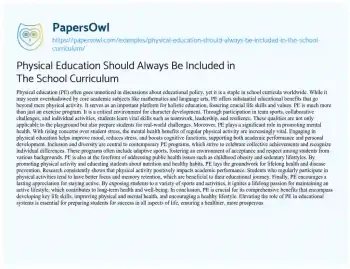 Physical Education Should Always Be Included in The School Curriculum. (2024, Apr 29). Retrieved from https://hub.papersowl.com/examples/physical-education-should-always-be-included-in-the-school-curriculum/