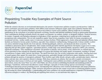 Pinpointing Trouble: Key Examples of Point Source Pollution. (2024, Apr 01). Retrieved from https://hub.papersowl.com/examples/pinpointing-trouble-key-examples-of-point-source-pollution/