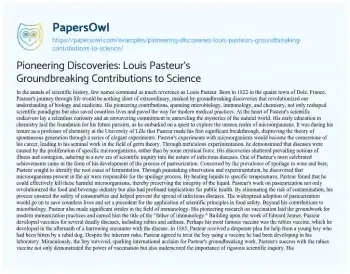Pioneering Discoveries: Louis Pasteur's Groundbreaking Contributions to Science. (2024, Jun 01). Retrieved from https://hub.papersowl.com/examples/pioneering-discoveries-louis-pasteurs-groundbreaking-contributions-to-science/