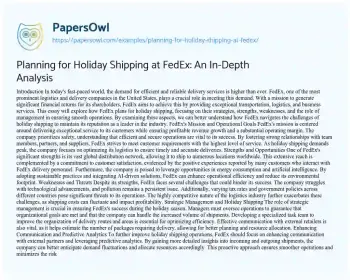 Planning for Holiday Shipping at FedEx: An In-Depth Analysis. (2020, Mar 07). Retrieved from https://hub.papersowl.com/examples/planning-for-holiday-shipping-at-fedex/