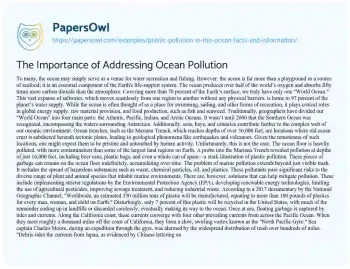 The Importance of Addressing Ocean Pollution. (2021, Jun 03). Retrieved from https://hub.papersowl.com/examples/plastic-pollution-in-tho-ocean-facts-and-information/